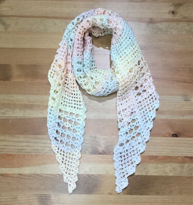 くさり編みと長編みで模様が出来上がるので、初心者さんでも編めちゃうショール。