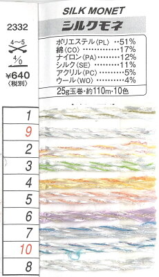 春夏毛糸 ハマナカシルクモネストールキット【かぎ針編みキット/レシピ無料/hamanaka/silkmonet/編み物キット/サマーストール/絹/コットンウール/オーロラ】