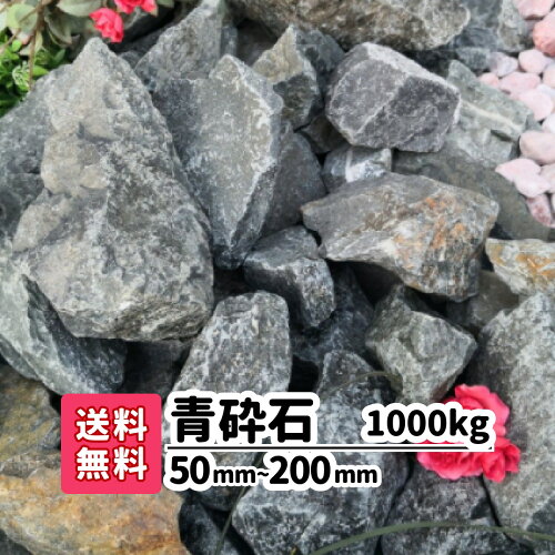 【送料無料】1000kg 青砕石 50mm〜200mm(20kg×50) ロックガーデン 庭石 大きい石 土留め 花壇 庭 アプローチ おしゃれ 洋風 和風 ガーデニング アクアリウム 割栗石 エクステリア メダカ 水槽 静岡県産 割栗石