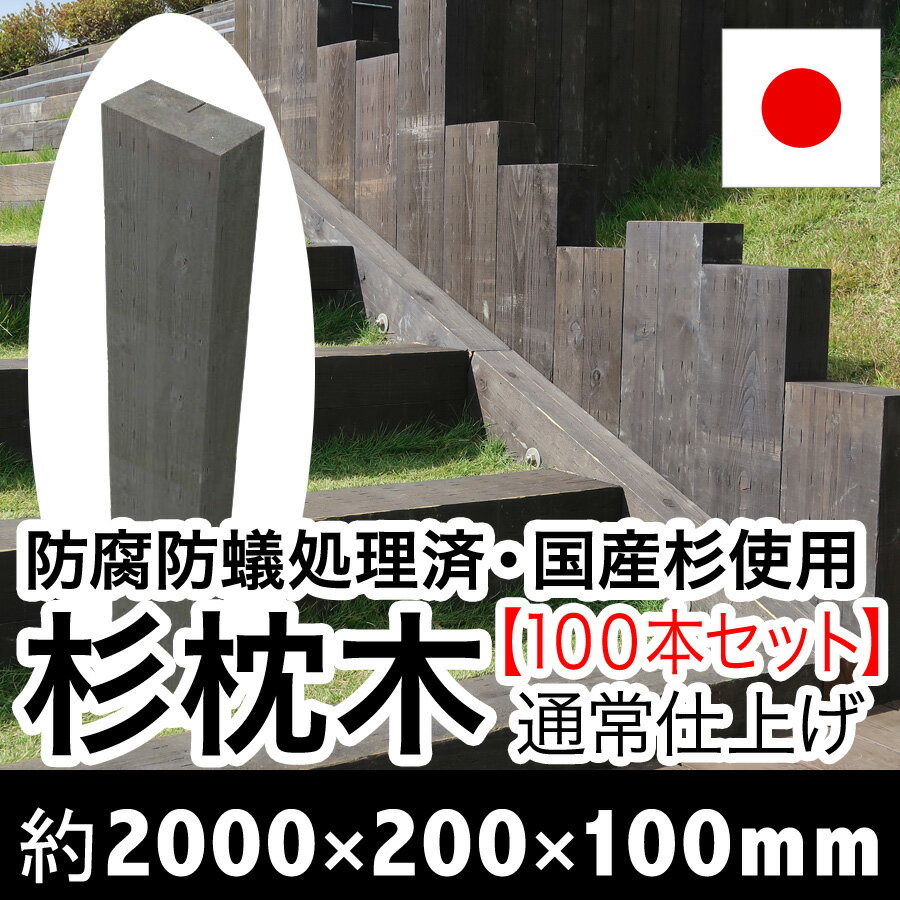 白アリ対策済☆枕木 国産杉 新品【防腐防蟻処理済】約2000×約200×約100100本セット【枕木/アプローチ/花壇/土留め/縁石/菜園/防腐/国産/枠/ステップ/敷石/縁木/防腐木材】