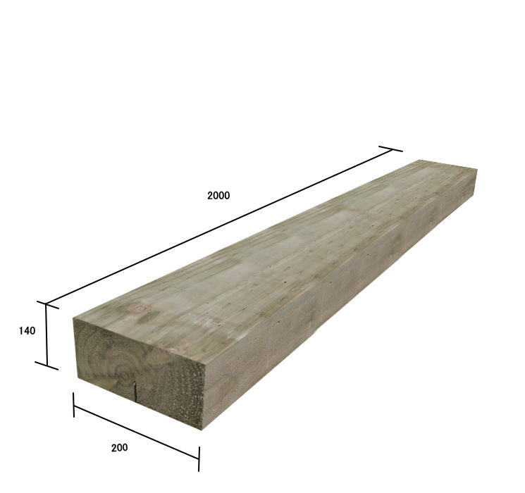 サイズ 約2000mm×約200mm×約140mm 色 モスグリーン(防腐剤の色) (PCモニターの都合上、実物のお色と比べて 若干濃淡の差が生じます。