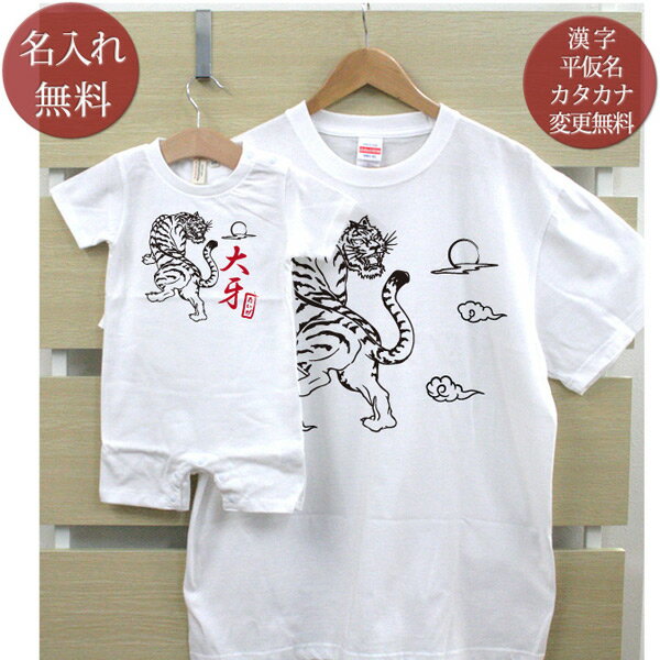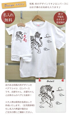親子 ペアルック お揃い 半袖 Tシャツ & ロンパース 親子ペア2枚セット 赤ちゃん ベビー 名前入り 和風 虎 ペア 親子コーデ リンクコーデ 男の子 女の子 ママへ パパへ 母の日 父の日 夏 運動会 おしゃれ おもしろ 【名入れ無料】 【ココロコ】