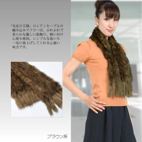 素材 毛皮:ロシアンセーブル 編地:綿100% サイズ 長さ約140cm×幅約16cm(毛足の長さを含む) 重量 約120g 原産国 中国(香港)製 商品説明 「毛皮の王様」ロシアンセーブルを編み込みにしたマフラーです。