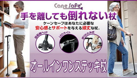 通販 口コミ クチコミ レビュー 感想 ケーンセーフ CaneSafe オールインワンステッキ杖 手を離しても倒れない杖 送料無料 ※当社は自社倉庫より配送しますので、沖縄・離島・中継地域は配送できません。