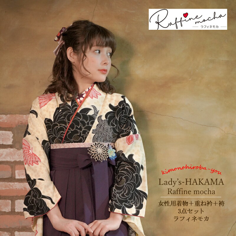 メーカー在庫状況(2020/3/30時点) RM-1着物残り2点 ◆スタッフより ドレス&着物ブランドの「ラフィネ」から着物&袴「ラフィネモカ」が登場! 印象的に最多菊の花がお気に入り。